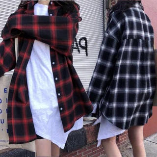 Áo khoác sơ mi DADUHEY tay dài kẻ sọc ca rô kiểu retro Hàn Quốc cá tính cho nam và nữ 3 màu lựa chọn
