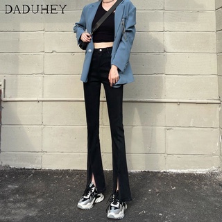Daduhey Quần jean dài ống loe lưng cao màu đen phong cách Hàn Quốc thời trang mùa hè dành cho nữ 2021