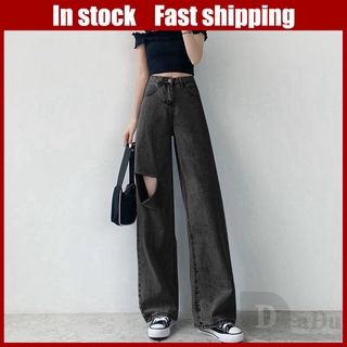 Quần jean DADUHEY lưng cao ống rộng thiết kế rách size lớn phong cách Mỹ đường phố mới dành cho nữ
