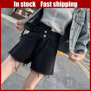 Quần short denim DADUHEY viền thô ống rộng cạp cao thời trang retro phong cách Hàn Quốc cho nữ