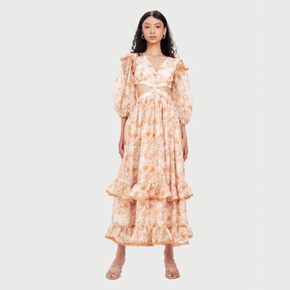 DEAR JOSÉ - Đầm dài cổ V cắt eo Freesia hoa cam