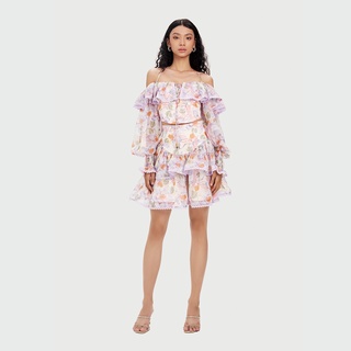 DEAR JOSÉ- Áo kiểu trễ vai tay phồng dài Havana vải hoa tím