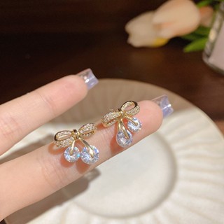 Khuyên Tai Nơ Đính Đá Zircon Sang Trọng Phong Cách Hàn Quốc