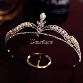 Vương Miện Cài Tóc Đính Ngọc Trai Nhân Tạo Sang Trọng Cho Cô Dâu