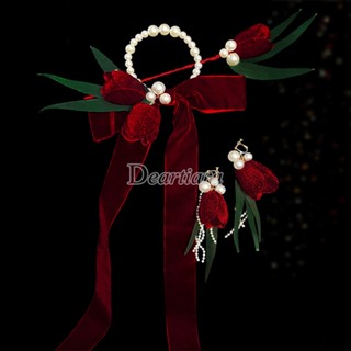 Kẹp Tóc Đính Hoa Và Ngọc Trai Màu Đỏ Mới Cho Cô Dâu
