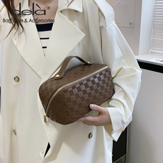 Dela Túi Đựng Mỹ Phẩm Da PU Sức Chứa Lớn Nhỏ Gọn Họa Tiết Cờ Vua Tiên Tiến