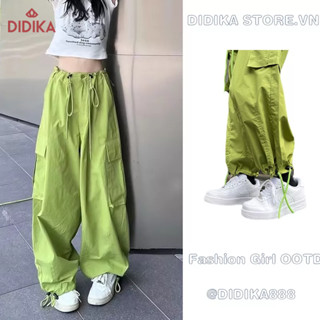 DIDIKA Quần Jean Nữ Lưng Cao Ống Rộng Nhiều Túi Phong Cách Retro