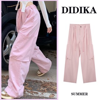 DIDIKA Quần Yếm Ống Rộng Lưng Cao Có Túi Thời Trang Mùa Hè Cho Nữ