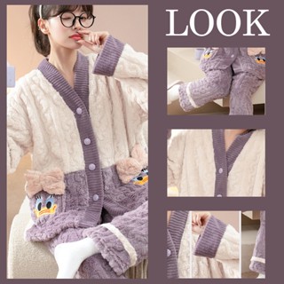 DIDIKA Bộ Đồ Ngủ Tay Dài Chất Liệu Nỉ Lông Cừu San Hô Họa Tiết Hoạt Hình Thời Trang Thu Đông Cho Nữ
