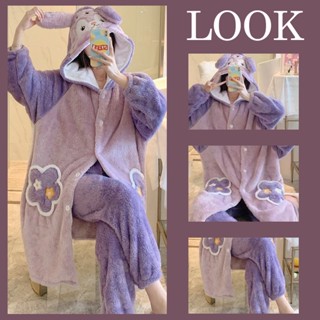 Áo choàng ngủ dáng dài DIDIKA vải lông cừu san hô dày hình nhân vật hoạt hình Stitch dễ thương