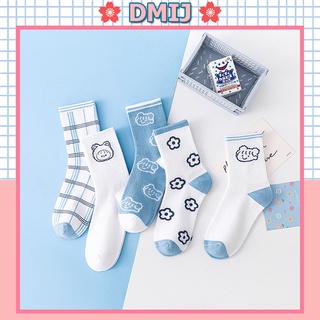 Set 5 đôi tất nữ cổ cao in hình gấu mệt vớ nữ cổ cao nhiều màu TD68