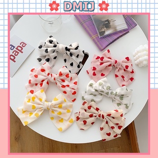 Kẹp tóc nơ vải bản to họa tiết tim nhiều màu đáng yêu