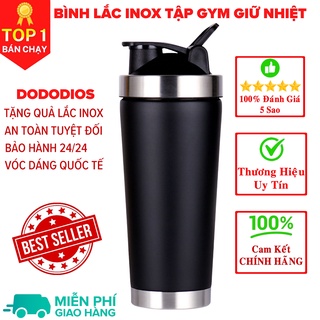 [Loại Cao Cấp - Giữ Nhiệt - Inox 304] bình lắc gym shaker, bình nước thể thao inox giữ nhiệt + Tặng quả lắc - ĐenViềnBạc