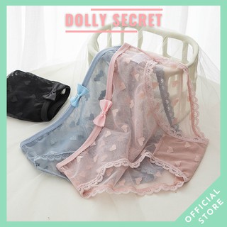 Quần lót ren xuyên thấu siêu mỏng sexy gợi cảm họa tiết trái tim đính nơ mát mẻ quyến rũ cho nữ DOLLY SECRET QL051