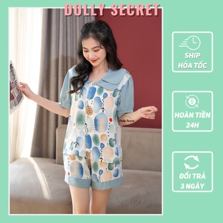 Bộ đồ Pijama lụa mango cộc tay bồng quần đùi mặc ở nhà cao cấp cổ 2 lá phong cách Hàn Quốc đáng yêu DOLLY SECRET CC02