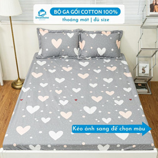 Bộ ga gối vỏ ôm cotton 100%, ga giường bo chun đủ size nệm Dreamhome