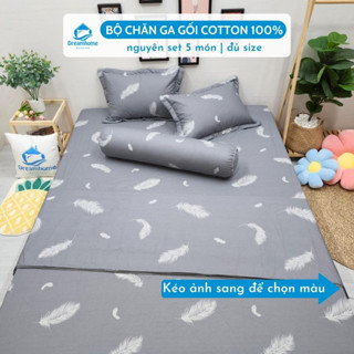 Bộ ga giường 5 món cotton 100% DREAMHOME, drap bo chun bọc đủ size nệm, vỏ gối trần lót bông, vỏ gối ôm khóa kéo