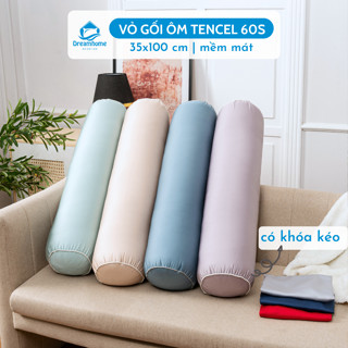 Vỏ gối ôm kéo khóa Tencel 60s DREAMHOME mát lạnh bo tròn 2 đầu size 30x95cm vừa ruột ôm 70x100