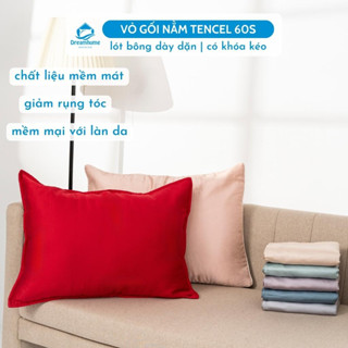 Vỏ gối Tencel 60s 50x70cm DREAMHOME mát lạnh có lót bông dày dặn, khóa kéo tiện lợi