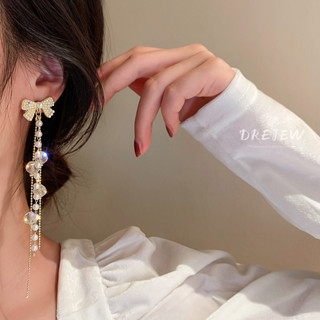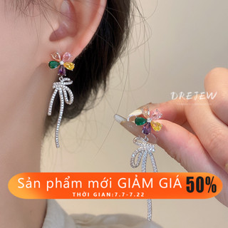 Bông Tai Bạc Đính Đá zircon Hình Nơ Tua Rua Thời Trang Cao Cấp Phong Cách Hàn Quốc Cho Nữ