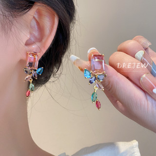 DREJEW Bông Tai Hình Học Bằng Bạc Đính Hạt Ngọt Ngào Dễ Thương
