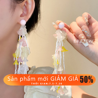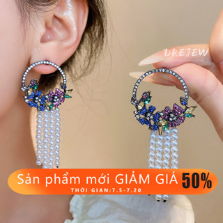DREJEW Bông Tai Dáng Dài Đính Ngọc Trai Và Kim Sa Lấp Lánh Thời Trang Cho Nữ