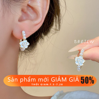 Khuyên Tai Bạc Hình Hoa Trà Đính Ngọc Trai Nhân Tạo Thời Trang