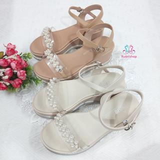 Giày sandal đế xuồng Dusto gót 6cm, quai trong viền hạt thời trang (sẵn 38, 39)