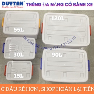 HOẢ TỐC Tp.HCM Thùng Nhựa Vuông Đựng Đồ Đa Năng Có Bánh Xe Duy Tân 15L/30L/55L/90L/120L/140L