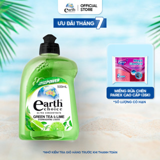 Nước Rửa Chén Đậm Đặc EARTH CHOICE Khử Mùi Tanh Giúp Ly Chén Dĩa Sạch Sáng Bóng Hương Chanh Trà Xanh Dung Tích 500ML