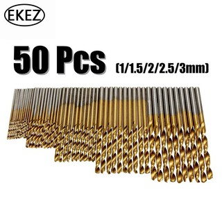 EKEZ Bộ 50 Mũi Khoan HSS Bằng Thép Mạ Bọc Titanium Kích Thước 1 / 1.5 / 2 / 2.5 / 3mm