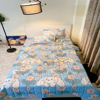 Set ga gối chăn hè chần bông Cotton 5 món EMMIBedding, mẫu Chó trắng tai dài mền cotton họa tiết đáng yêu
