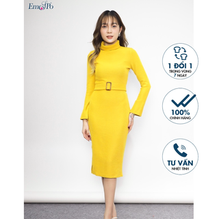 Đầm len cổ lọ Emspo ,sẻ ống tay và gấu váy đai eo rời DLL0006