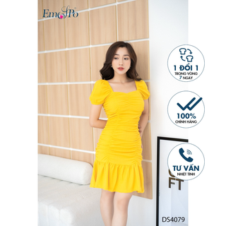 Đầm ôm cổ vuông, đuôi cá, rúm chun dọc thân Emspo DS4079