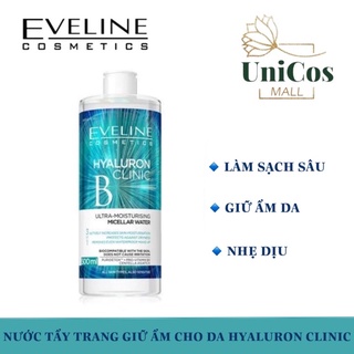 Nước Tẩy Trang Eveline Hyaluron Clinic B5 Và Tinh Chất Rau Má Làm Dịu, Dưỡng Ẩm Và Phục Hồi Da 500ML