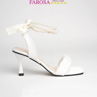 Giày sandal nữ cao gót 7cm quai nhún ngang FAROSA - S5 phối quai hậu dây buộc hạt ngọc