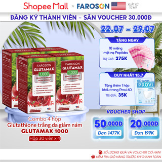 Combo 4 Hộp Viên Uống Trắng Da Glutathione Giảm Nám Chống Nắng Faroson Glutamax 4 x 30 viên