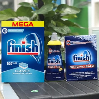 Combo viên rửa bát finish 100 Viên + muối rửa bát finish 1.2kg + Nước làm bóng alio 1 lít dùng cho máy rửa bát