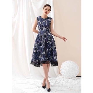 Đầm Xòe Sát Nách FIONA In Họa Tiết Hoa Kim Tuyến, Phối Ren Dây MÃ L459029