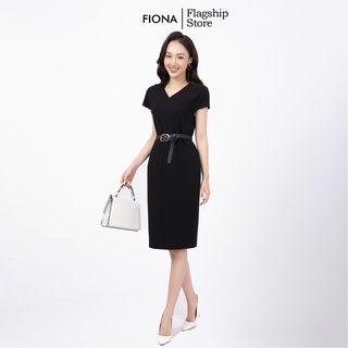 Đầm nữ dáng suông Fiona cổ V tay liền thắt đai lưng trang trí F452000