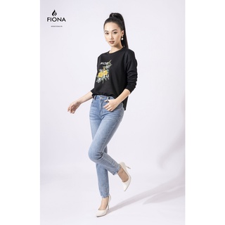 Áo thun cotton nữ dài tay FIONA. dáng suông cổ tròn, in hoa F520682