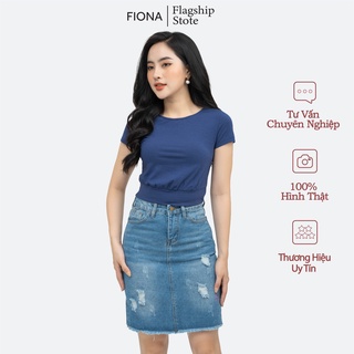 Áo cotton thun nữ croptop dáng bo gấu, cổ tròn, tay ngắn FIONA F522180