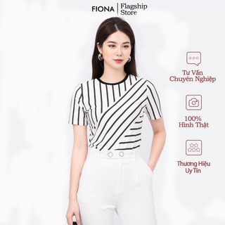 Áo thun nữ, cổ tròn in họa tiết kẻ - F521190 [FIONA]