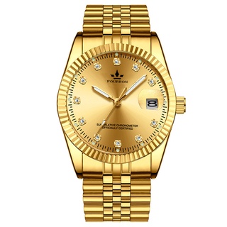 Đồng Hồ Nam FOURRON F722 chống nước 3ATM Doanh Nhân Mặt Đính Đá Dây Thép Không Gỉ mạ vàng