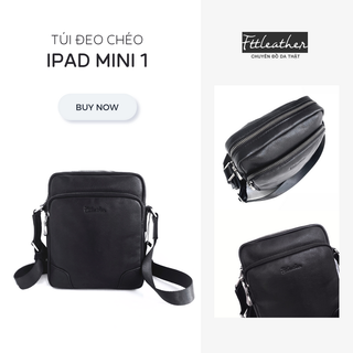 Túi đeo chéo nam FTT Leather da bò màu đen thiết kế trơn đơn giản, thời trang, đựng được ipad mini kích thước 19cmx23cm