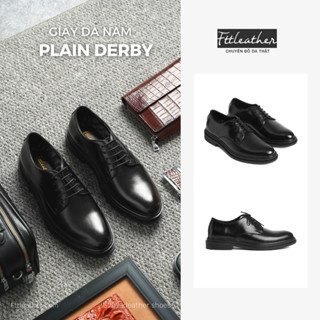 Giày da bò nam FTT Leather Derby trơn tăng chiều cao màu đen mã F0301