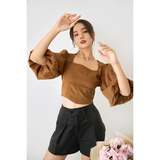 Áo Nữ Kiểu Croptop Tay Ngắn Phồng GILLEE Thiết Kế Sang Trọng