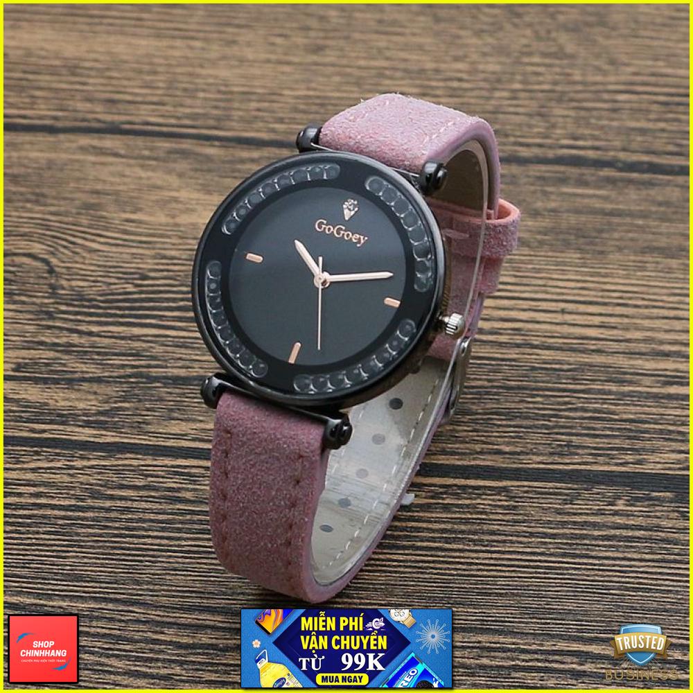 Đồng hồ nữ dây da thời trang Gogoey mặt đính thời thượng hot trend phong cách trẻ trung Basic Jewelry DH25