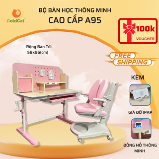 Bàn ghế thông minh cho bé chống gù chống cận cao cấp GoldCat A95 | Tặng kèm đồng hồ, giá kệ Ipad