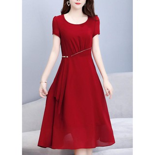 GOTI - Đầm Suông Trung Niên Giấu Bụng Cho Người Mập Vải Voan 2 Lớp Form Chữ A Tay Ngắn 3367
